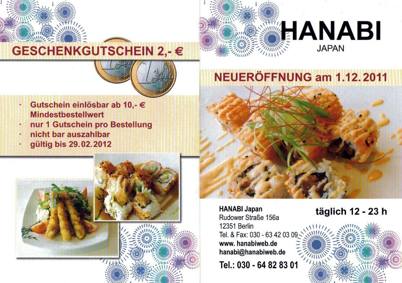 Einfach ausdrucken, falten und nach dem Essen der Bedienung überreichen! Kosten sie unsere HANABI (Japan) Aktion aus!